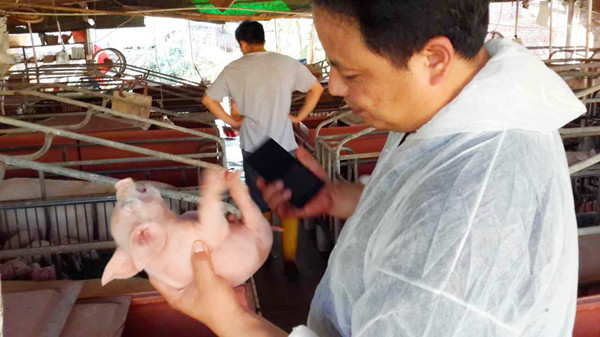 郭金權(quán)老師對產(chǎn)房仔豬進(jìn)行視檢