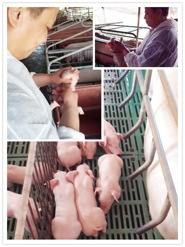 自從用了姆益健 母豬奶水充足 仔豬皮紅毛亮
