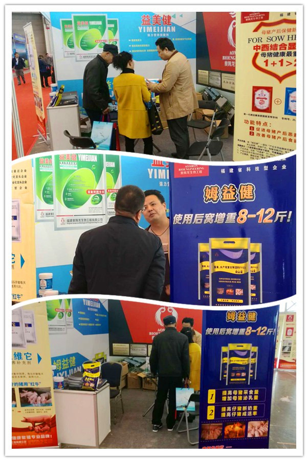 2016年11月18-19日,奧姆龍公司受邀參加了在南京國際博覽中心舉辦的2016年首屆江蘇畜牧業(yè)博覽會。該展會由江蘇省畜牧總站、江蘇省家禽業(yè)協(xié)會、江蘇省養(yǎng)豬行業(yè)協(xié)會、江蘇省奶業(yè)協(xié)會、江蘇省飼料工業(yè)協(xié)會、江蘇省獸藥業(yè)協(xié)會聯(lián)合主辦。公司銷售部總監(jiān)陳林和技術部總監(jiān)郭金權老師帶隊參加,此次博覽會上主要展示了公司“奧力磺,奧肺康寧,姆益健,弓感康,奧噻林”等產(chǎn)品。此次博覽會參會人數(shù)眾多,在我們的展位上,技術部總監(jiān)郭金權老師為紛紛前來咨詢的客戶朋友們提供了專業(yè)的技術指導和詳細的講解,大家對奧姆龍公司的產(chǎn)品產(chǎn)生了濃厚的興趣,尤其對“姆益健”給予了高度的評價。