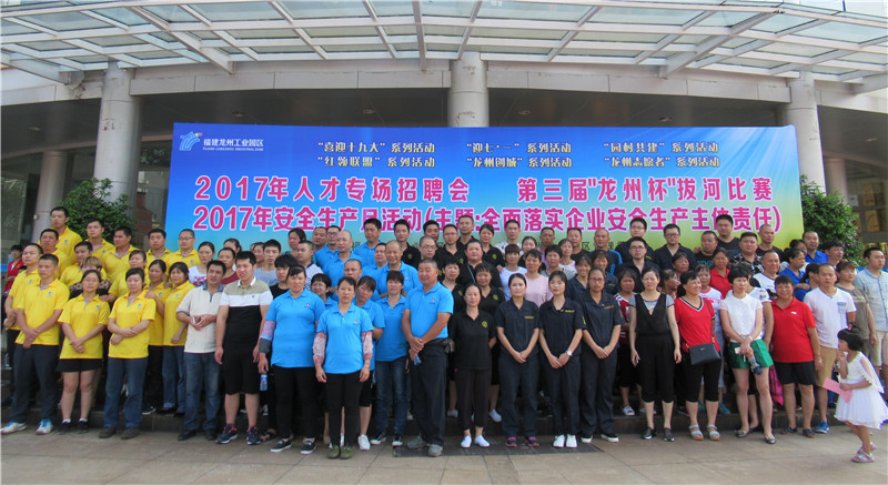 為豐富全體員工的精神文化生活,促進在職員工之間的交流,發(fā)揚團隊精神,增強凝聚力,公司于2017年6月29日參加了福建龍州工業(yè)園區(qū)舉辦的第三屆“龍州杯”拔河比賽。