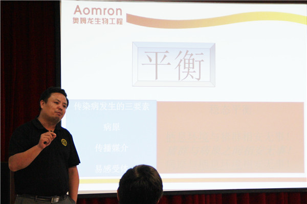 此次會(huì)議特邀請到了原解放軍獸醫(yī)大學(xué)預(yù)防獸醫(yī)學(xué)博士、軍事醫(yī)學(xué)科學(xué)院藥理學(xué)博士、美國明尼蘇達(dá)州立大學(xué)醫(yī)學(xué)研究院博士后陶增思博士。陶增思博士為銷售精英技術(shù)分享了《豬病發(fā)生與微生物制劑》,陶博士以淵博的知識、豐富的經(jīng)驗(yàn)給大家上了受益匪淺的一堂課。