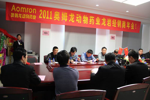兔年蹦蹦跳跳的離開(kāi),龍騰虎躍的龍年即將開(kāi)始, 12月15日奧姆龍公司迎來(lái)了2011年奧姆龍龍巖經(jīng)銷商年會(huì)。龍巖各縣市區(qū)經(jīng)銷商匯聚一堂,在公司精心組織下拉開(kāi)年會(huì)帷幕。龍巖市動(dòng)物衛(wèi)生監(jiān)督所鐘副所長(zhǎng)出席了本次會(huì)議,他用樸實(shí)而貼切的致辭,對(duì)龍巖動(dòng)保經(jīng)銷商的成績(jī)給予充分的肯定,并展望即將到來(lái)的龍年,對(duì)所有經(jīng)營(yíng)動(dòng)保產(chǎn)品的企業(yè)的工作給予指導(dǎo),寄予他新年的問(wèn)侯。