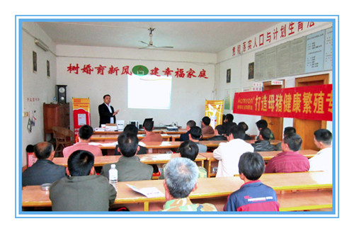 2012年4月18日,為了有效的治療當(dāng)?shù)匕l(fā)生的副豬桿菌和皮炎腎病等疾病,公司技術(shù)總監(jiān)郭金權(quán)博士深入武平縣中堡鎮(zhèn)一線,向養(yǎng)殖戶講解在如何合正確、有效的使用產(chǎn)品。
