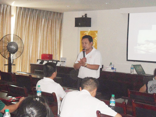 圖4 江西區(qū)域經(jīng)理何正濤和上高經(jīng)銷商對產(chǎn)品進(jìn)行講解,并做好會中簽單工作