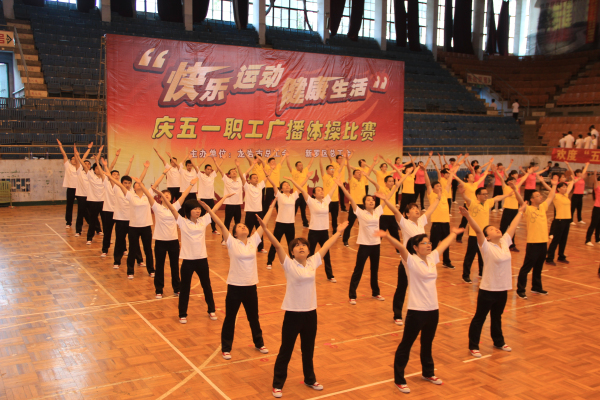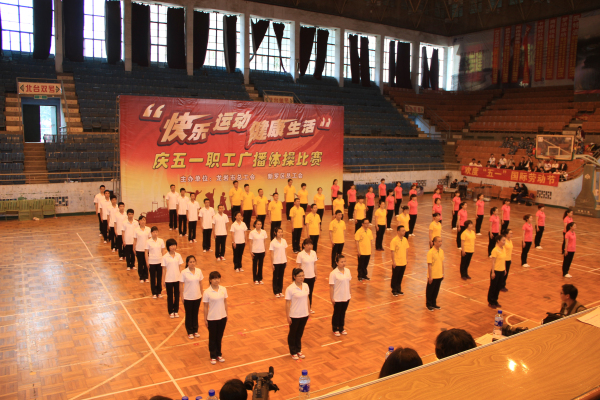 2013年4月27日星期六,為了進一步推進全民體育運動,龍巖市總工會與新羅區(qū)總工會組織二十多支代表隊參加第九套廣播體操比賽。經過連續(xù)幾周的加強訓練,我公司的二十多名員工身著統(tǒng)一的運動服,邁著矯健的步伐,和著鏗鏘的口號進入賽場。比賽現(xiàn)場,各代表隊隊員精神抖擻,整裝待發(fā)。廣播的音樂響起,隊員們踏著整齊的節(jié)拍,動作標準流暢,一展奧姆龍人飽滿的精神和健康的體魄。