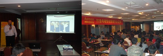 高安是養(yǎng)豬大市,全市能繁母豬存欄數(shù)在十萬頭以上,居江西省市級單位首位。本次會議正是以“打造母豬繁殖障礙專業(yè)品牌”為主題,公司技術(shù)部總監(jiān)郭金權(quán)博士專門針對《母豬繁殖障礙之子宮內(nèi)膜炎的防治》作了精彩的技術(shù)推廣,因地制宜地針對高安市當(dāng)?shù)刎i病防控提供對策及治療方案。以現(xiàn)場互動的溝通方式使客戶更全面、直觀的認(rèn)識到奧姆龍公司產(chǎn)品的特性、療效和正確使用方法。