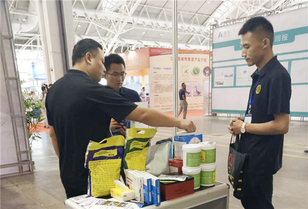 奧姆龍公司展示了最新的產(chǎn)品姆仔康片劑以及明星產(chǎn)品金立維它、開胃健長(zhǎng)、姆源康等,技術(shù)部總監(jiān)郭金權(quán)及江蘇區(qū)域經(jīng)理汪旭陽為前來參觀的客戶提供了專業(yè)的技術(shù)咨詢,并為養(yǎng)殖戶提供了眾多高效實(shí)用的產(chǎn)品使用方案??蛻魧?duì)公司的母豬系列產(chǎn)品和微生態(tài)制劑產(chǎn)品產(chǎn)生了濃厚的興趣,并給予了高度的評(píng)價(jià)。