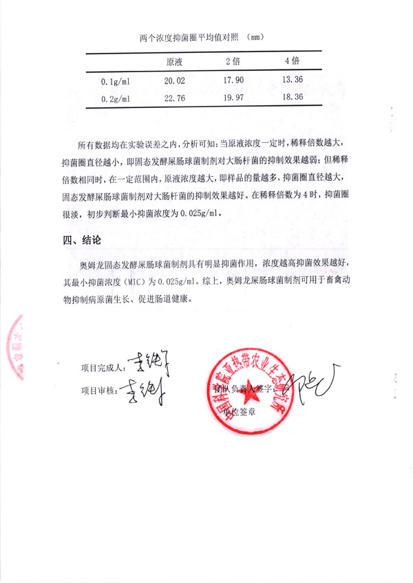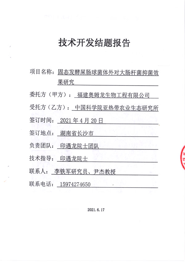 鑒于屎腸球菌的抑菌作用,我司于2021年4月與中國(guó)科學(xué)院亞熱帶農(nóng)業(yè)生態(tài)研究所簽訂協(xié)議,對(duì)我司生產(chǎn)的固態(tài)發(fā)酵屎腸球菌體外對(duì)大腸桿菌抑菌效果進(jìn)行研究。