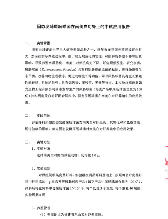 固態(tài)發(fā)酵屎腸球菌在南美白對(duì)蝦上的中試應(yīng)用結(jié)果