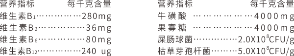 【原料組成】屎腸球菌、枯草芽孢桿菌、復合B族維生素、?;撬?、果寡糖、純化水等。