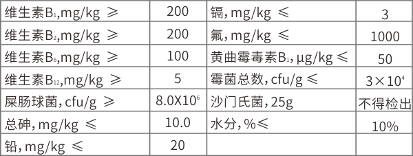 產(chǎn)品名稱:混合型飼料添加劑 復(fù)合維生素B+屎腸球菌