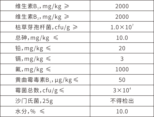 【原料組成】 維生素B1、維生素B2、枯草芽孢桿菌、載體膨潤(rùn)土