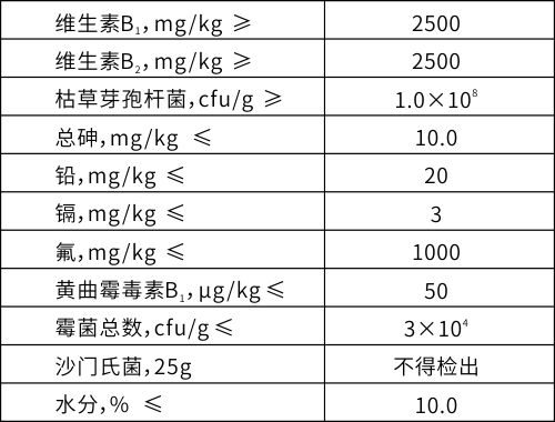 產(chǎn)品名稱:混合型飼料添加劑 硝酸硫胺(維生素B1)+核黃素(維生素B2)+枯草芽孢桿菌